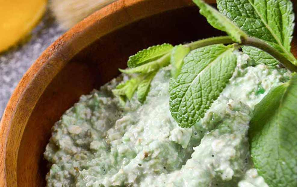 سپس نعناع و سفیده تخم مرغ را در مخلوط کن ریخته و مخلوط می کنیم تا زمانی که خمیری یک دست به دست آوریم.