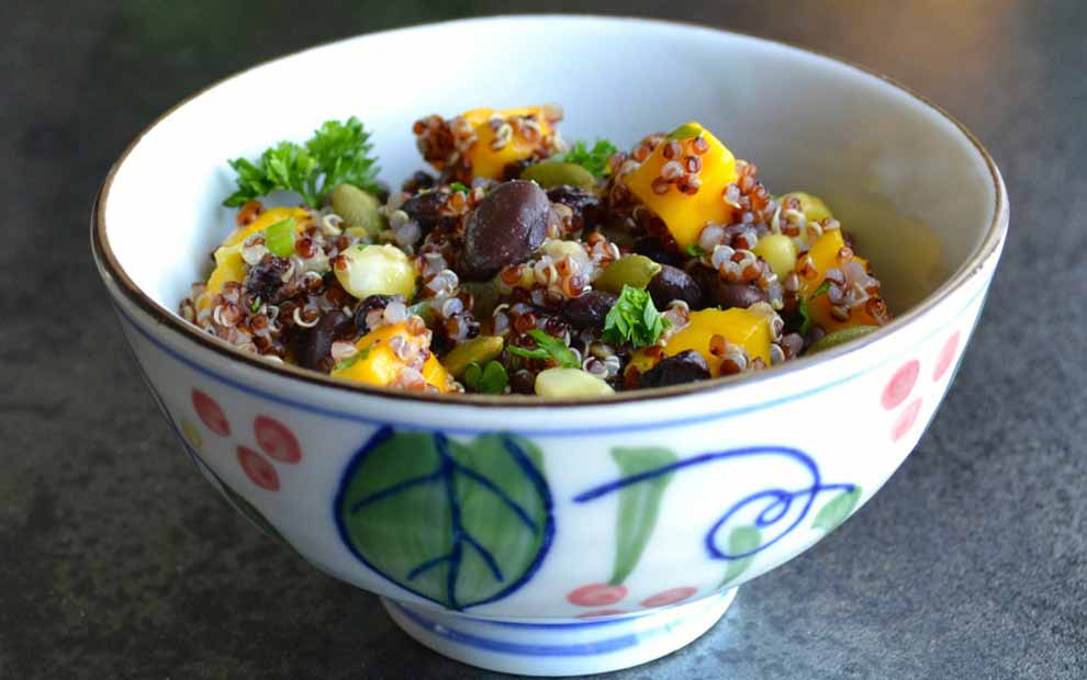 سایر مقالات سالاد انبه، لوبیا قرمز و کینوا مواد لازم: کینوا خام………….1 فنجان آب مرغ……………3/4 فنجان انبه……………1 عدد متوسط پیازچه………………6 عدد فلفل دلمه ای قرمز………………….1 عدد متوسط گشنیز………………2... ادامه مطلب
